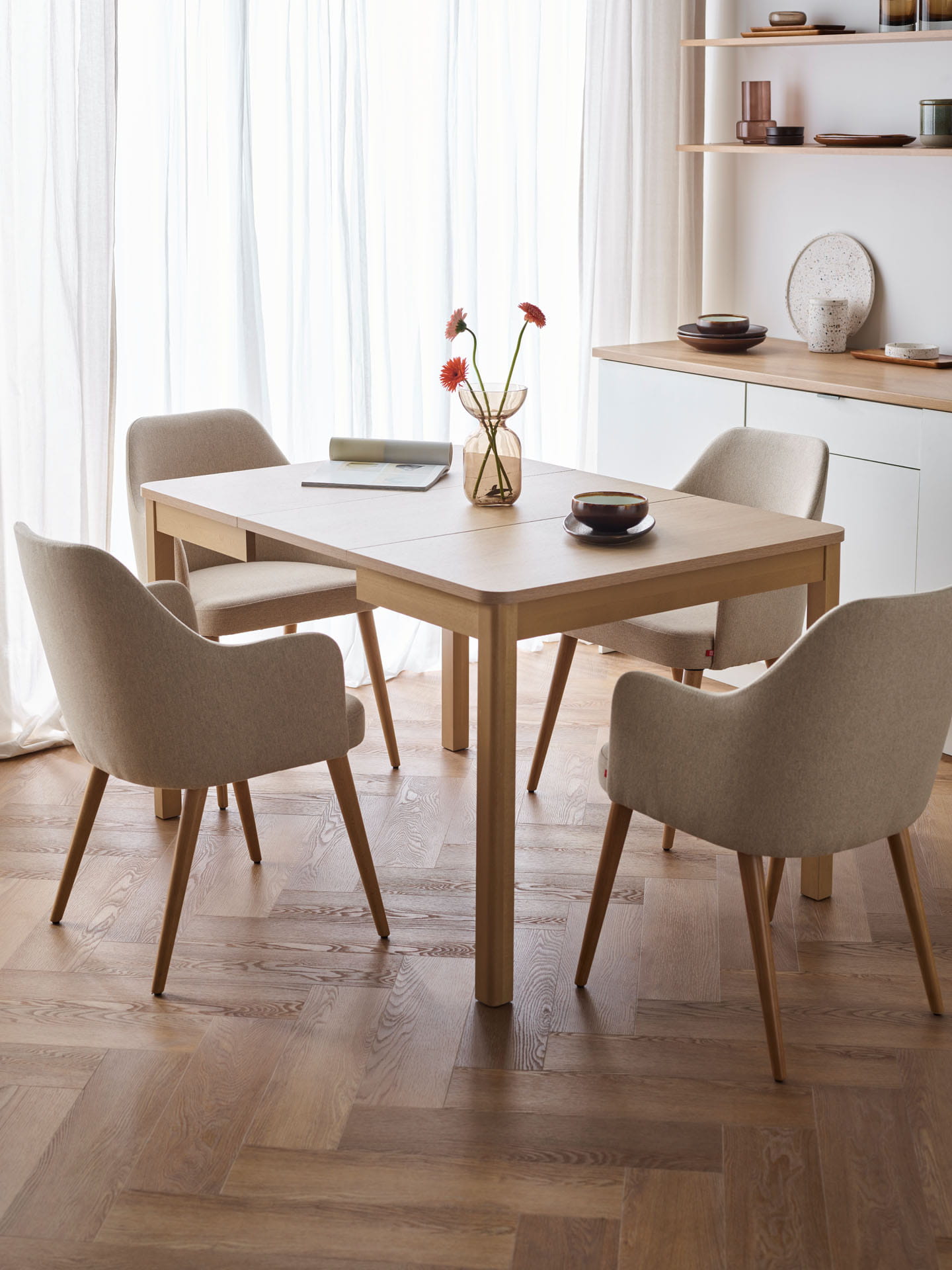 - Meble o obłych kształtach mogą wprowadzić do wnętrza miękkość, ale to proste, horyzontalne linie najlepiej sprawdzają się w optycznym poszerzaniu perspektywy.